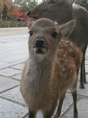 東大寺参道でバンビ発見。ガイドさんの話によると10月中旬に生まれたそうです。(生後1ヶ月)