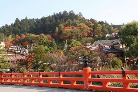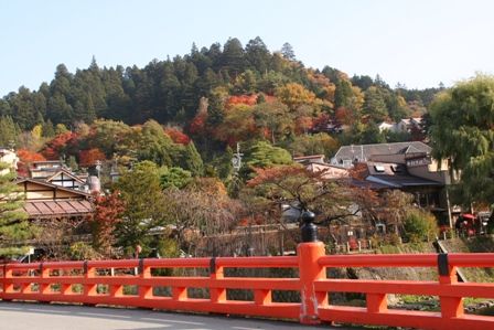 高山陣屋を出た所から見た景色 所々まだ紅葉が残っています。