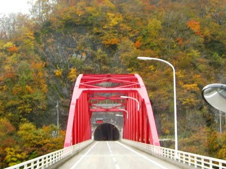 こんな橋をいくつも渡り、白川郷へ向かいます。