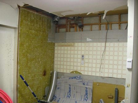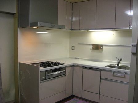 L型にした為に換気扇が手前に移動されてます。この工事が結構大変だったみたいで、日にちがかかりました。