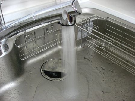 水道の蛇口のボタンを押すとシャワーになります。そして、口の部分が外れて、ホースが出て来ます。