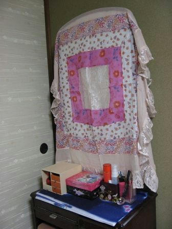 それで、せめて気分転換にとドレッサーの鏡のカバーを付けました。