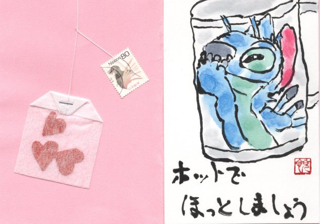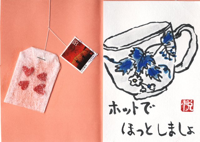 表紙をめくるとこういう絵手紙になってます。