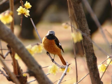 ロウバイとジョウビタキ