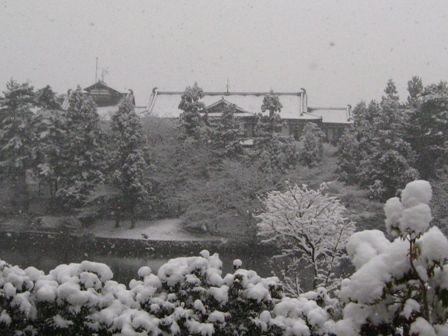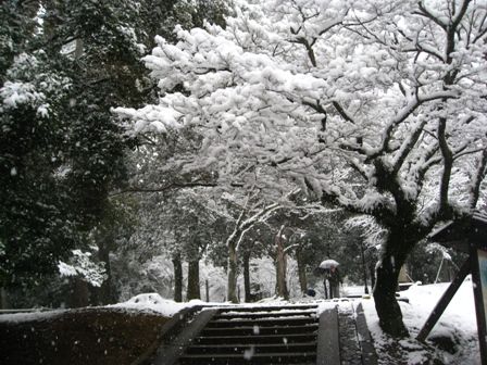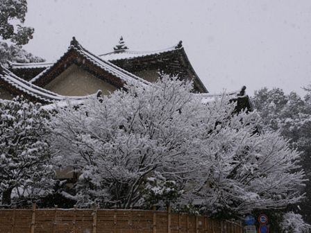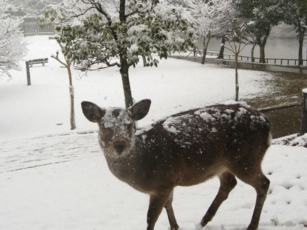 雪の奈良公園①興福寺付近