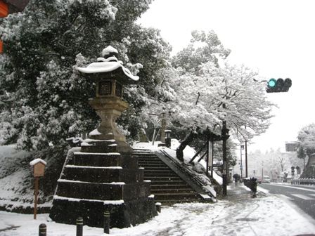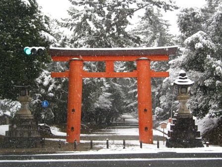 雪の奈良公園②春日大社 一之鳥居付近