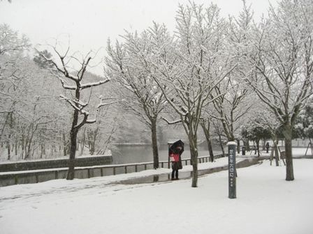 雪の奈良公園③荒池・鷺池