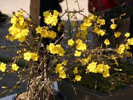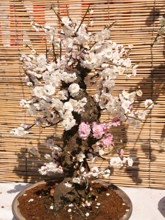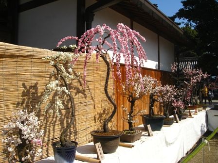 青空の盆梅がきれいですね。あまり強い匂いは苦手なので、盆梅展は屋外の方が私には合っています。