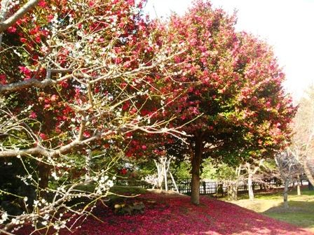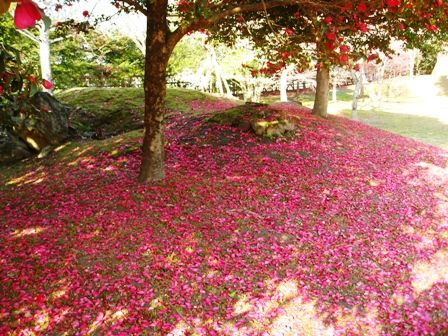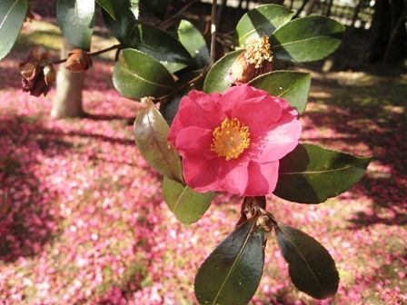 立寒椿はまだまだ満開で、花弁もたくさん散っています。