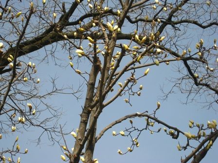 商店街の入り口にある西方寺のハクモクレン もうまもなく開花です。