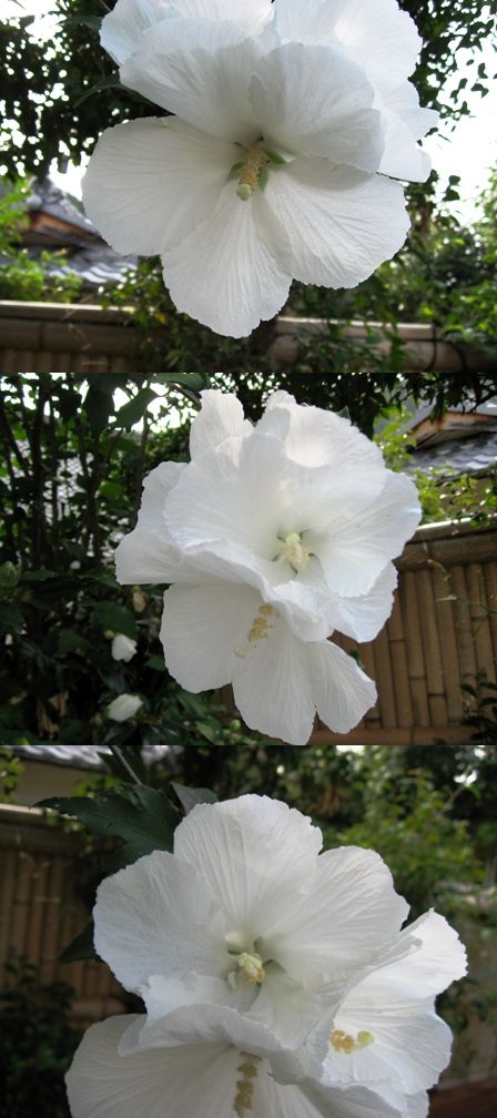 三つ子のムクゲは仰る通り、ブログの効用ですね。多分今までだったら、気付かなかったでしょうね。こんな綺麗な白いムクゲは初めて見たように思います。