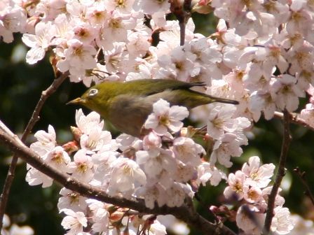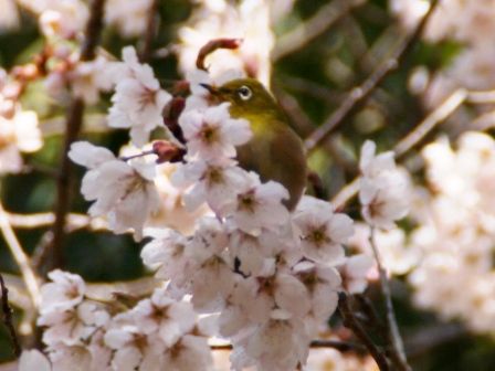 彼岸桜とメジロ 桜の中に埋もれてます。