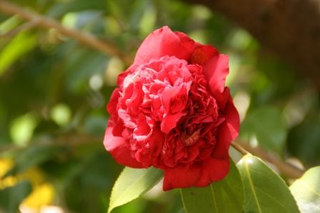 真っ赤な椿が咲いてました。淡いピンクの中ですごく目立ってました。