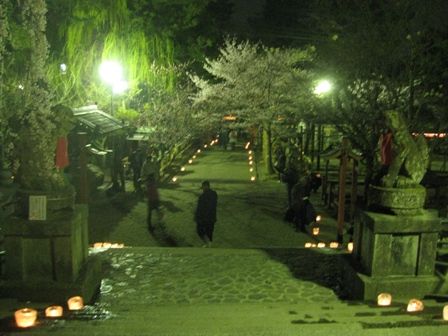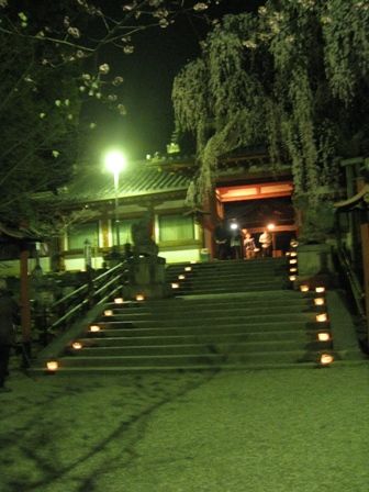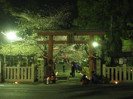 4/1 夜6時から10時まで氷室神社で「氷献灯」があり、次女と一緒に行って来ました。