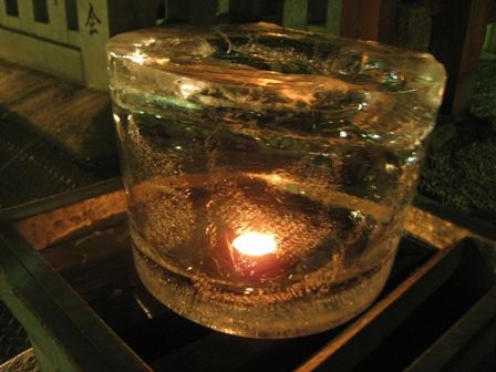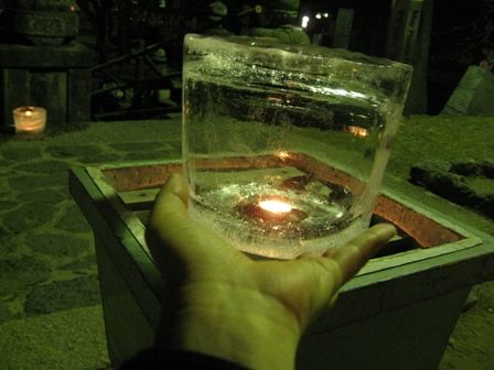 中には、ロウソクが入ってます。氷の中で火がともってるなんて、不思議な感じです