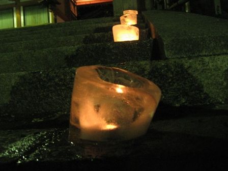 初めての氷献灯、透き通った氷の中の炎を見てると心が和みました。