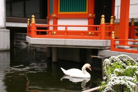 池には、たくさんの白鳥もいます。