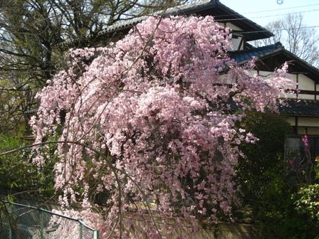 どこかのお宅のお庭のようです。見事なしだれ桜ですね。