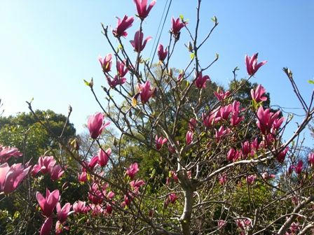 戒壇院のすぐ前のお宅のお庭に咲くシモクレン。
