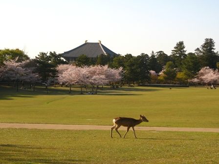 奈良公園はソメイヨシノが終わり、奈良八重桜がまだなので、