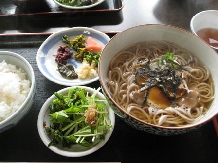 茶店で食べたきのこそば、美味しかったです。京野菜も新鮮でした。