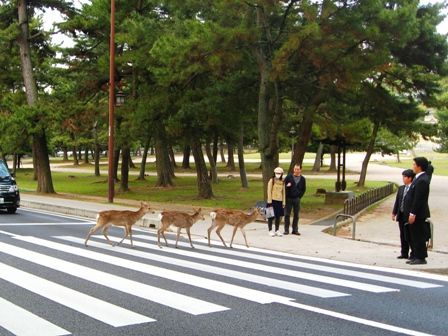 横断歩道をちゃんと歩いているのか、鹿の歩く道にたまたま横断歩道があるのか。
