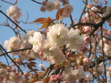 薄いピンクの八重桜