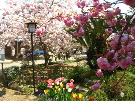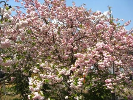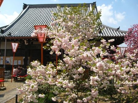 そんなに広くない境内のあっちこっちに八重桜が一杯。どれもほぼ満開でした。