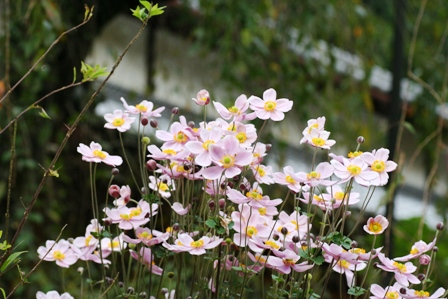 に向います。歩いて5分程でお寺に到着しました。拝観料は200円です。ピンクの芙蓉が咲いていて、百日紅もほんの少し残っていて、でも、ススキが綺麗だったり、こじんまりとした花のお寺と言う感じでした。そして、当ブログでは初登場の秋明菊(しゅうめいぎく)が綺麗に咲いていたんです。ピンクと白が咲いていて、特にピンクがたくさん咲いていました。