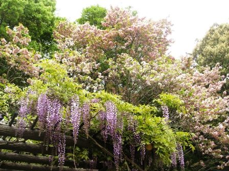 荒池園地の奈良八重桜と藤棚