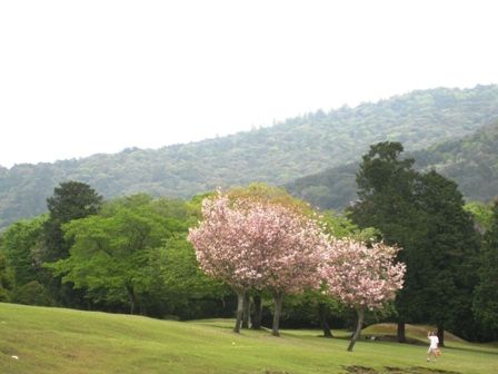 広ーい飛火野にポツンと植わってる奈良八重桜