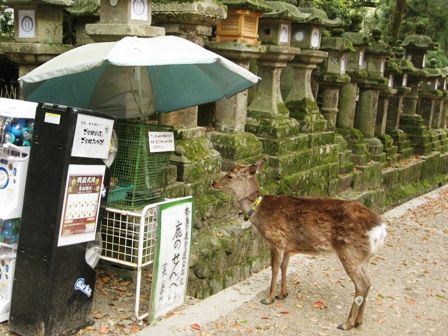 この鹿さん、春日大社参道を通る時、必ずほぼ100%この鹿せんべいの売店の前で