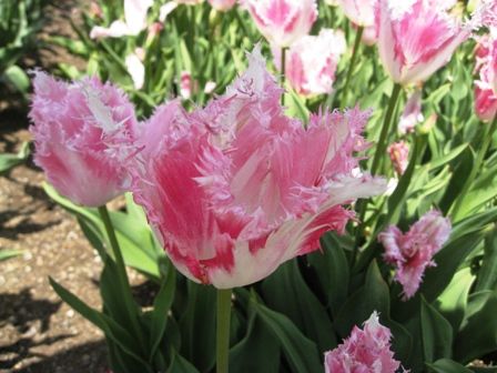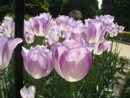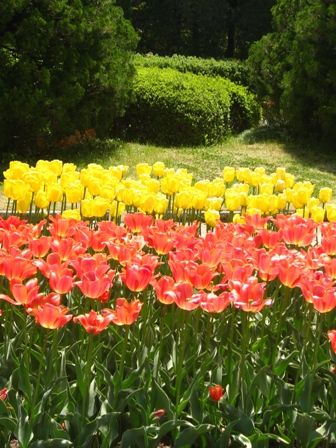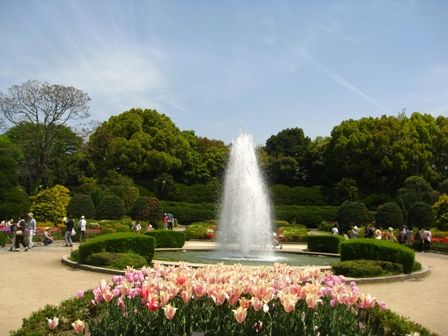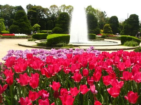 噴水の前にチューリップの花壇がありました。