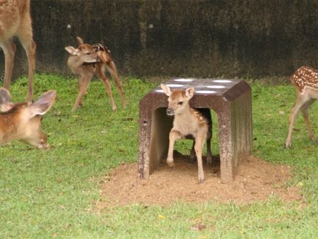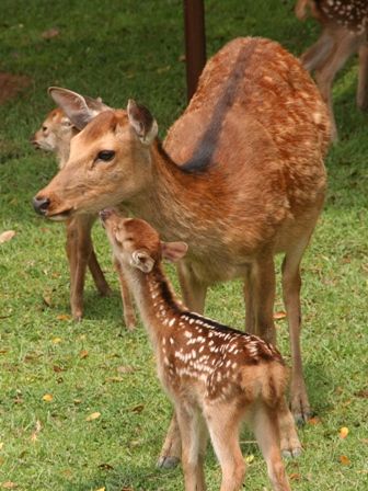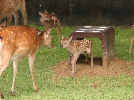 2011年誕生の仔鹿とお母さん鹿が鹿苑の角きり場で、公開されています。