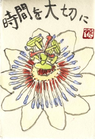これは、ベランダに咲いたトケイソウを家で描きました。