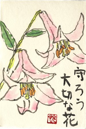 大神神社のササユリを現地でスケッチして、家で仕上げました。