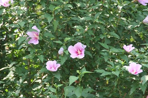 ムクゲが咲いていました。白いのや、八重咲きのも咲いていました。