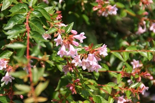 ハナゾノツクバネウツギ(アベリア) 白いのは良く見かけますが、ピンクは初めてです。