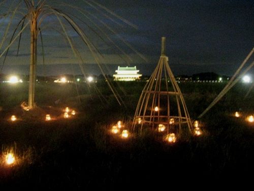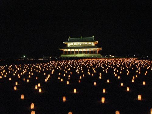 大極殿前広場 ちょうどこの場所で座って花火を待っていました。