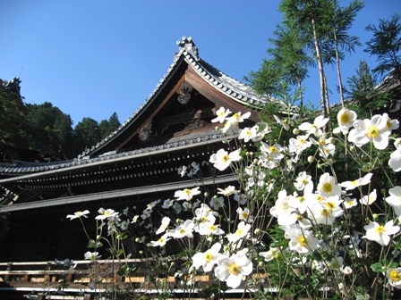 観音堂と白い秋明菊です。