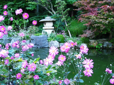 蓮華寿院庭の池に咲く秋明菊です。