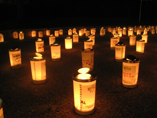 このろうそく行灯、1個100円で灯す事が出来ます。