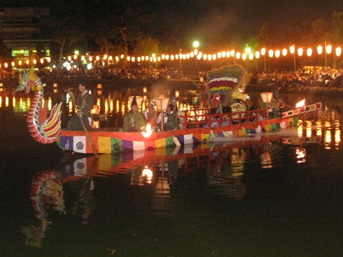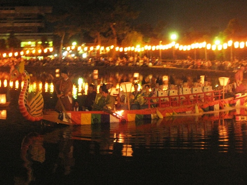 鷁首船(げきすせん)です。ミス奈良とかが乗船してます。