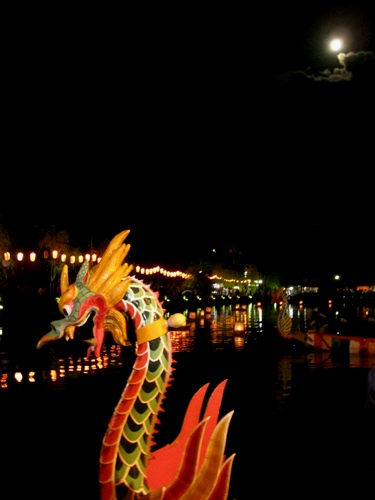 終わってから、満月が顔を出したので、置いてあった龍頭船と一緒にパチリ。