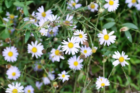 次にヨメナが綺麗に咲いていました。今、神苑ではこのヨメナがお勧めだそうです。紫苑に良く似てますね。写真は白っぽく写っていますが、実際は薄い紫色でした。
