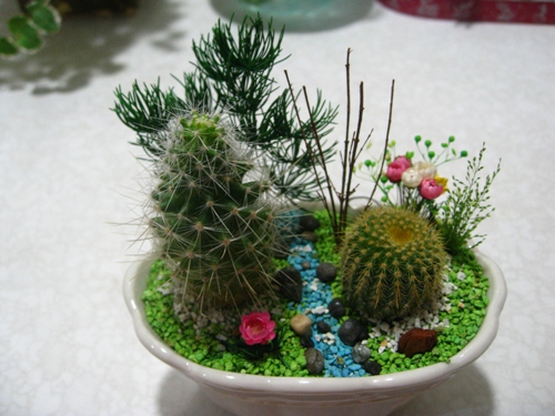 可愛いミニサボテンを次女が手作りアート展で、買って来てくれました。