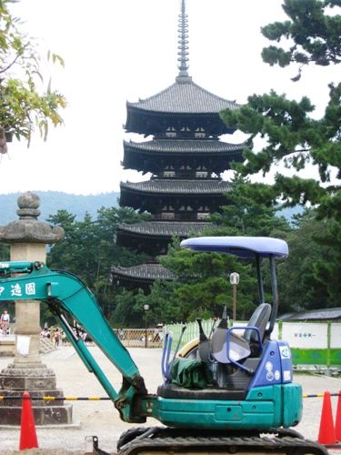 南円堂の前でも工事やってるみたいですが、あえてその前から五重塔を撮ってみました。
