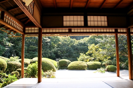 お茶室で聞くととっても落ち着きますよね。こちらの庭はとっても綺麗。