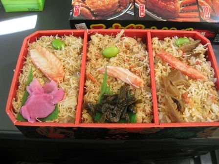 車内の駅弁は「カニ三種味くらべ弁当」です。