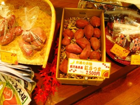 鹿児島中央駅に到着 さっそく駅の売店にはサツマイモや桜島大根が。